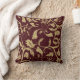 Este travesseiro bonito tem um padrão de espiral antigo, estilo retrô, de folha de ouro sobre um fundo vermelho escuro e burrado. Ambos os lados do travesseiro têm a mesma imagem.