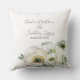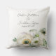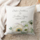 Este travesseiro decorativo floral romântico apresenta um fundo branco simples e elegante com flores ranunculus de aquarela. Um delicado buquê de ranúnculo e verde é ilustrado no fundo. Os nomes de exemplo de um novo casal e data de casamento são impressos acima. Você pode personalizar o travesseiro para incluir seus próprios nomes personalizados ou texto.