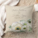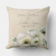 Este travesseiro decorativo floral romântico estilo vintage apresenta um fundo design de papel pergaminho rústico com flores ranunculus de cor aquosa. Um delicado buquê de ranúnculo e verde é ilustrado no fundo. Os nomes de exemplo de um novo casal e data de casamento são impressos acima. Você pode personalizar o travesseiro para incluir seus próprios nomes personalizados ou texto.
