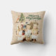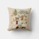 Uma pá bege com aspecto de fundo, decorada com uma raposa fofa e uma árvore de Natal. Texto e quadro de fotos rústico. Feliz Natal é escrito com uma fonte de estilo retrô. Uma imagem de burlap, não é tecido burlap.