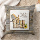 Almofada de casamento personalizada com madeira desgastada pelo tempo e nomes dos noivos Sr e Sra com um par de botas de cowboy masculina e feminina com girassóis.