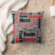 Um doce design de travesseiro decorativo na frente e atrás que diz obrigados desenhados com vermelho e preto Obrigado escrito em vários idiomas e uma variedade de estilos de fonte sobre a cinza. Clique em Personalizar! para selecionar uma cor de fundo diferente da cinza em Editar e Fundo. Na coluna à direita em Escolha suas opções, você também pode selecionar o Travesseiro lombar.