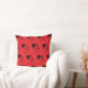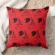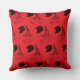 Design de cerejas de corte preto num travesseiro vermelho. Mão de design de corte de madeira moderna desenhada pelo artista de madeira WindyDesign.