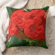 travesseiro decorativo de 20" x 20" com uma imagem de uma pintura aquosa de um adorável gerânio vermelho-escuro. Verde atrás. Veja toda a coleção de Travesseiros Flores e Plantas na seção HOME.
