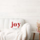 Adicione um sotaque festivo à sua casa com este travesseiro de Natal personalizável. Ele apresenta a palavra "JOY" em tipografia vermelha e ousada. Personalize adicionando seus detalhes. Este travesseiro de Natal personalizado é perfeito como presente de Natal personalizado. Itens correspondentes estão disponíveis.
