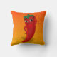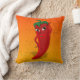 Uma pimenta de desenho animado em um quebra-cabeça de serra. Fundo vermelho e amarelo. Design original em travesseiros personalizados.