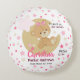 Adorável design de nascimento de uma menina que apresenta um desenho animado de ursinho de pelúcia sentado na lua e estrelas na cor escura, rosa claro e creme. Fácil de personalizar substituindo o nome e os detalhes pelo seu próprio.
