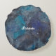 Este travesseiro azul, preto e roxo com uma galáxia cheia de estrelas e planetas irá deleitar o amante do espaço ou da ciência em sua vida. Um lado diz "Sempre alcançar as estrelas", o outro diz "sonho" em letra moderna. O texto é personalizável. Parte de uma coleção da Parcel Studios.