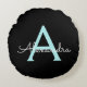Almofada Redonda Aqua Teal Blue Script Girly Monographic Name