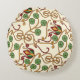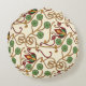 Art Nouveau-inspired floral design with swirling gold vines, green circular leaves, and red petals on a cream background, creating an elegant pattern.