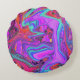 Almofada Redonda Arte líquida Abstrato cor-de-rosa, azul e laranja