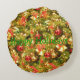 Árvore de Natal decorada com ornamentos e travesseiro vermelho.