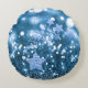 Belo Travesseiro decorativo redondo com brilho azul-boque, cinzas e estrelas, Design