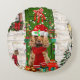 Cachorro Cachorro Espanhol sentado do lado de fora da casa decorada com coroa de Natal, árvore de Natal é uma ideia perfeita de presente de Natal para amantes de cachorros.
