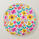 A round pillow adorned with bold, colorful flowers in warm yellows, pinks, reds, and teal, adding cheerful, modern charm to sofas, beds, and cozy reading spaces. A stylish, gift‑ready accent for lovers of bright florals and uplifting home décor.