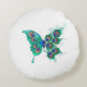Almofada Redonda Borboleta com Penas de Pavão Verde