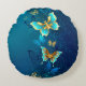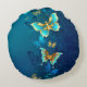 Almofada Redonda Borboletas de ouro em um fundo azul