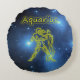 Sinal de Zodiac Aquarius sobre o padrão de fundo do universo azul para o travesseiro amante da astrologia