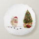 Almofada Redonda Cachorro de Natal Engraçado Pomeraniano com Árvore