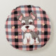 Adicione um toque de reluz e conforto a sua casa com este adorável travesseiro redondo! Apresentando um cachorrinho Schnauzer fofo em um padrão de verificação de na moda rosa e búfalo preto, este travesseiro é o sotaque perfeito para qualquer sofá, cadeira ou cama. O detalhe de impressão de pata divertida adiciona uma camada extra de charme, fazer que é algo que deve ter para qualquer amante de cachorro ou qualquer pessoa que queira adicionar um pop de personalidade à sua decoração.