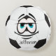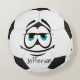 Almofada Redonda Cara engraçada de bola de futebol preto e branco.