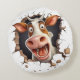 Almofada Redonda Cartografia de vaca louca e engraçada encara os fa