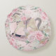 Este travesseiro redondo floral boho chic apresenta um caprichoso cavalo mecedor de madeira, rosas cor-de-rosa bonitas e grama de pampas em tom terroso. Personalize com um nome ou uma inicial. É um adorno perfeito para a decoração da sala do bebê ou um presente único para um novo bebê! Itens correspondentes disponíveis na loja! (c) The Happy Cat Studio