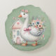 Um design de cottagecore caprichoso com um ganso branco gracioso adorrado com uma coroa de flores macios e pastel e um arco de gingham rosa, orgulhosamente ao lado de uma casa pastel inspirada em conto de fadas. As asas do ganso florescem com delicadas flores em tons de pincel, creme e azul, cercadas por ramos de folhas, borboletas, e sotaques encantadores que criam uma atmosfera rural sonhadora. Essa composição encantadora captura a essência da confortável casa de campo, misturando encanto rústico com beleza floral feminina num estilo lúdico e animador. Uma celebração perfeita da natureza, chorona e mágica do livro de histórias de eterno. A IA gerou trabalho de arte.