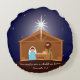 Uma cena de natividade ilustrada com Maria, José e Jesus bebê.