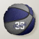 Esta equipe de basquete colorido travesseiro para uma garota ou um garoto apresenta a imagem realista de uma bola de basquete que tem painéis coloridos de azul e cinza alternados - personalize com o nome do jogador em uma fonte do estilo "autógrafo" sobre o número de camisa do atleta - por katz_d_zynes