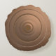 Um design metálico moderno, mas simples, onde um sistema de círculos coloridos de bronze se expande de um centro. Há uma certa profundidade com luz e sombra adicionadas também. A cor de fundo sólida que brilha em partes menores é um pouco mais escura na parte traseira do travesseiro.