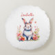 Almofada Redonda Coelho Personalizado de Coelho em Flores Rosa