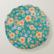 Almofada Redonda Coelhos florais com padrão azul adorável