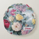 É um travesseiro redondo com uma ilustração de várias flores em diferentes palcos de floração. Há rosas vermelhas, rosas brancas, rosas amarelas, rosas cor-de-rosa e flores roxas. O fundo é um céu azul claro com nuvens brancas e peludas. A imagem global tem uma textura macia, semelhante à aquarela.
