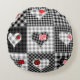 Almofada Redonda Corações Brancos Pretos Sem Olhos.