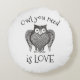 O desenho da coruja com corpo em forma de coração e texto personalizado.
