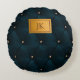 Almofada Redonda Couro Verde Elegante,Diamantes,Monograma