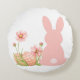 Almofada Redonda Cute Pink Easter Bunny with Spring Flowers