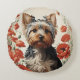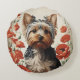 Almofada Redonda Cute Yorkshire Terrier Botanical Red Poppies