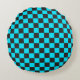 Almofada Redonda Cyan and charcoal checkerboard pattern