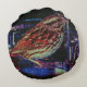 Almofada Redonda Cyberpunk Sparrow em Neon Cityscape