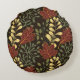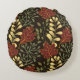 Seamless pattern featuring repeating dark red maple leaves, pale yellow sprigs, and dark green swirling vines on a dark brown background.