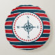 Design náutico com decoração em forma de bússola, em forma redonda, com estrelas sobre fundo listrado vermelho, azul e branco