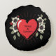 Travesseiro personalizado com pop vermelho, azul e amarelo. Este cartão pode ser para ele ou para ela. O coração está em um estilo de tatuagem gótica nas costas. Você pode adicionar sua foto favorita e seus nomes na área de personalização.