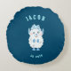 Travesseiro redondo com monstro branco giro sobre fundo azul escuro