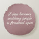 Add a little dark humor to your decor with this dusty mauve round pillow featuring the cheeky cross-stitch-style phrase, “I sew because stabbing people is frowned upon.” Blending cozy cottage charm with a witty, sarcastic twist, this design is perfect for sewists, quilters, embroiderers, and makers who appreciate a good laugh. The soft vintage-inspired color palette and stitched-look lettering give it a handmade aesthetic that feels both playful and stylish, making it a fun accent for craft rooms, sewing spaces, and gift giving.