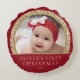 Almofada Redonda Elegante Bebê de Natal em Ouro Vermelho para a 1ª