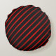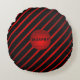 Almofada Redonda Elegante Diagonal Black Red Strips Nome do Monogra