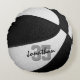 Esta equipe legal colorido o travesseiro temático de basquete para ele apresenta a imagem realista de uma bola de basquete que tem painéis coloridos em preto e branco alternados - personalize com o nome do jogador em uma fonte do estilo "autógrafo" sobre o número de camisa do atleta - por katz_d_zynes