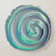 Almofada Redonda Espiral gigante prata e aquamarina sobre azul